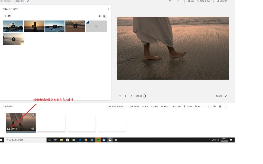 2. ストーリーボードに素材を並べていきます。(割り込み、削除もできます)
