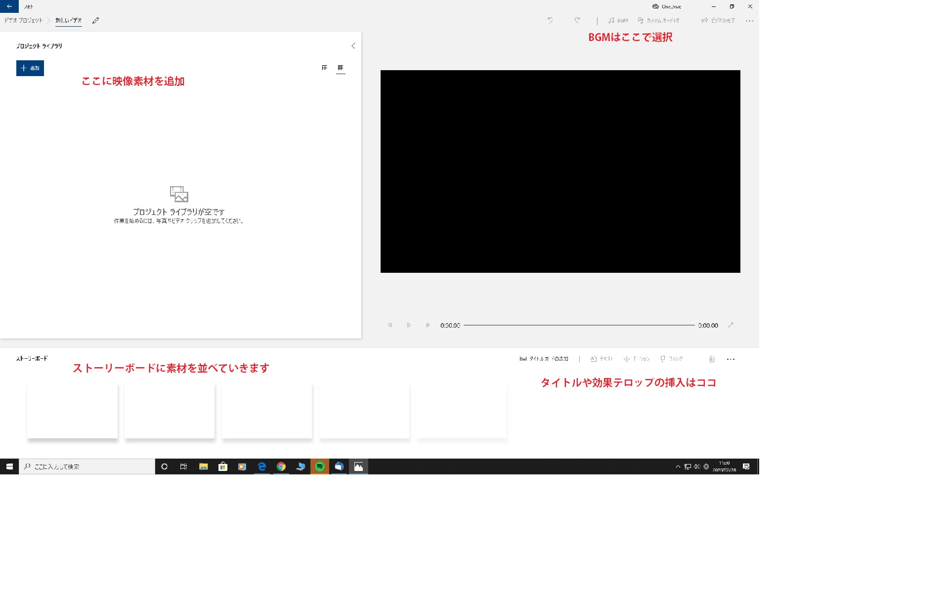 このビデオエディターを開くと下記のような画面が出てきます