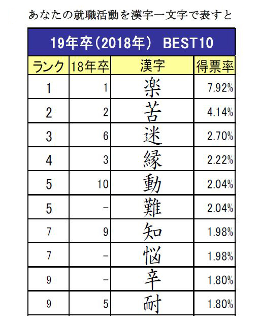 2014年卒から5年間もの間、1位のワードは「楽」という文字